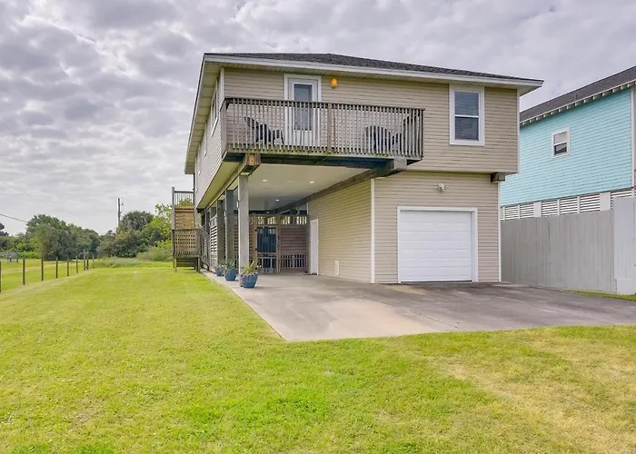 **Welcome to the Furnished Patio and Deck Galveston Escape!** A serene retreat ideally located just 80 km from William P. Hobby Airport, this charming vacation rental invites you to unwind and rejuvenate. With its elegant design and lush surroundings, it's perfect for families, friends, and even your furry companions, as the 3-bedroom home accommodates pets with ease.